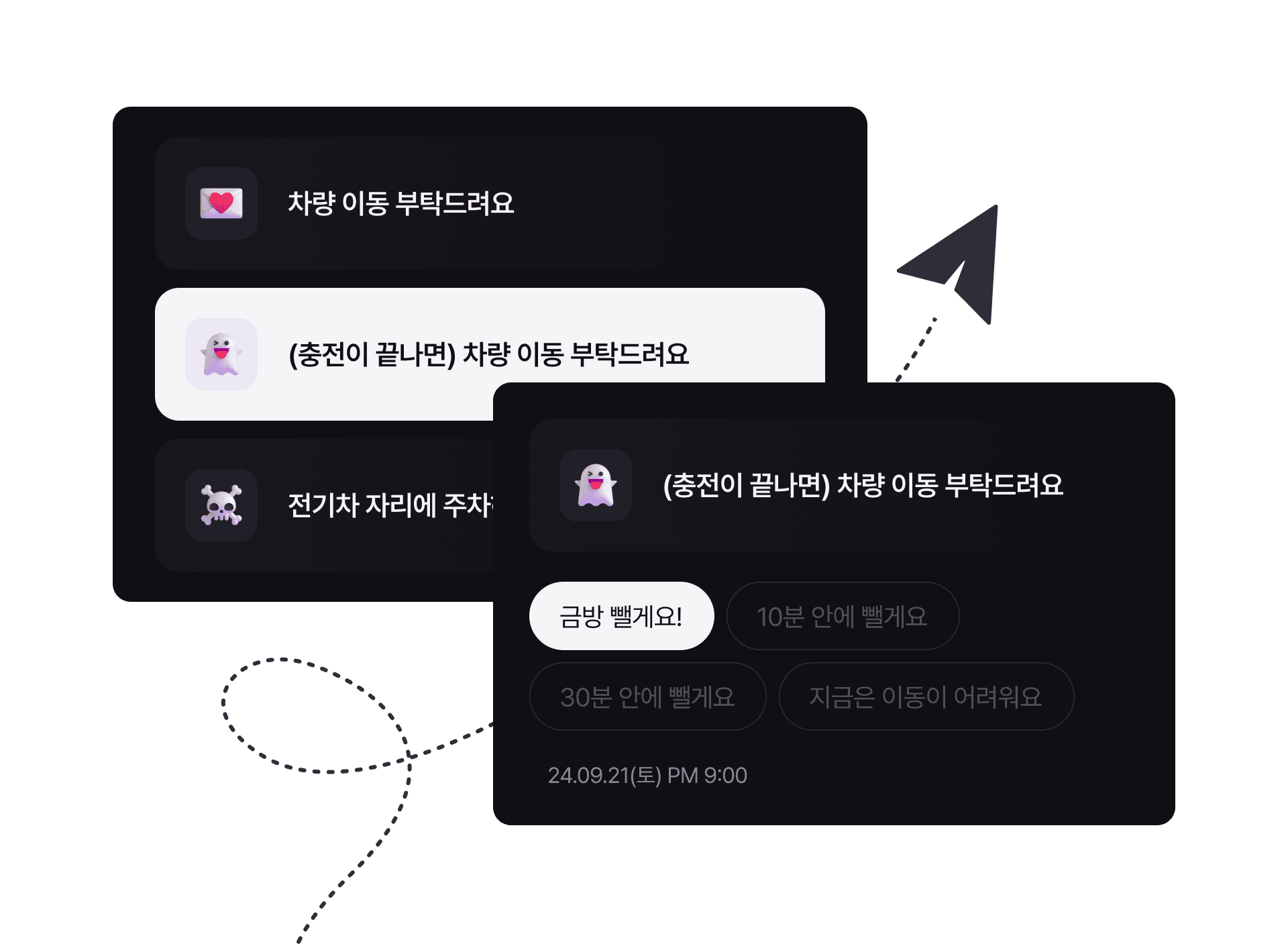 메시지를 받았다면 빠른 답장도 가능해요